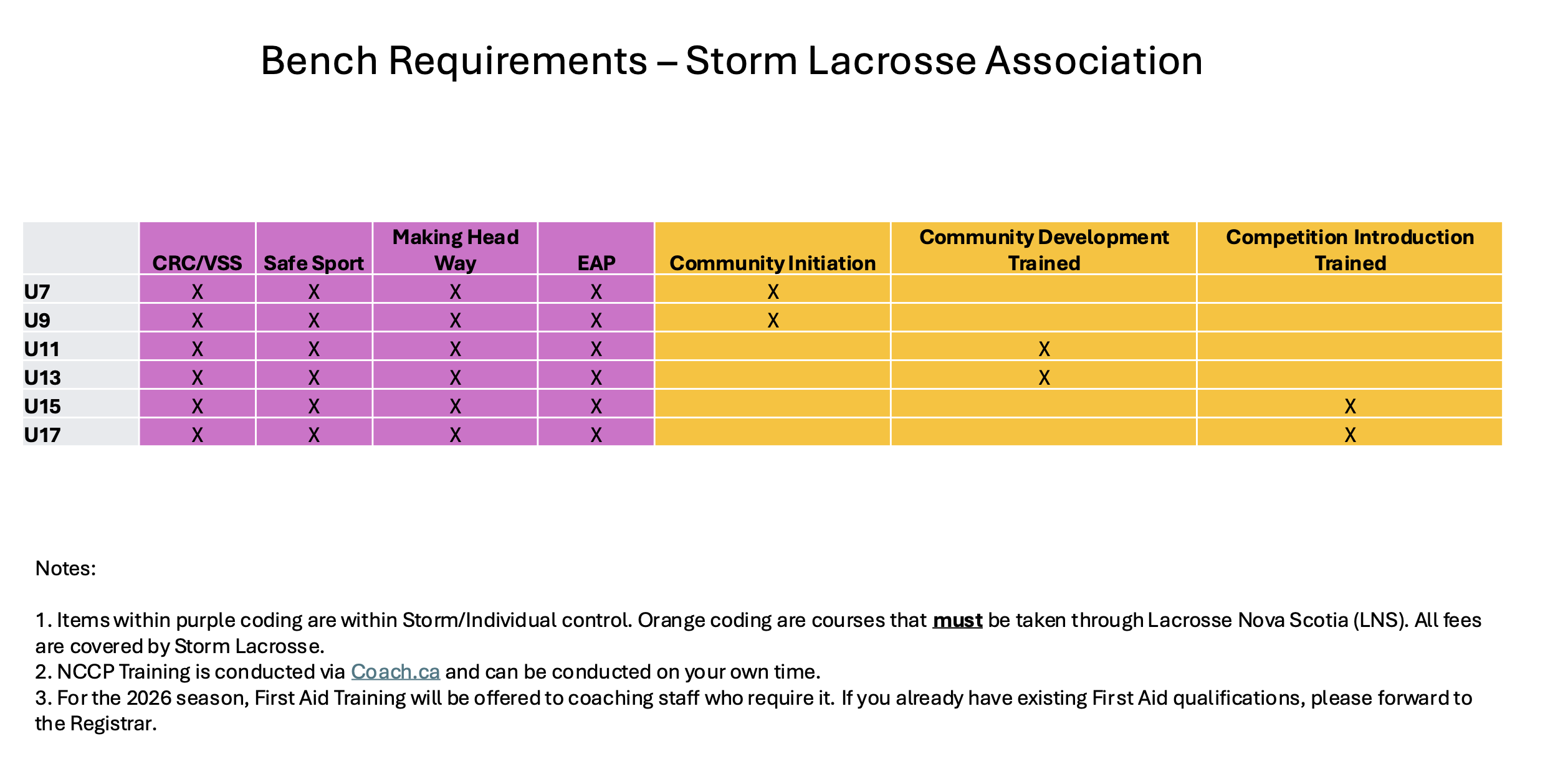 | U17 | Competitive Intro Trained/Community Development Certified |
